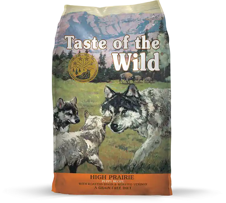 Taste of the Wild High Prairie Puppy with roasted bison and venison is a premium, grain-free recipe with sweet potatoes and peas providing your growing puppy all the proper nutrition needed for optimal development. Bison and venison are excellent alternative proteins to poultry, and provide exceptional protein and fat levels for your canine carnivore. With roasted buffalo as the first ingredient, this diet mimics an ancestral diet free of grains and packed with real meat. Supplemented with fruits and vegetables, Taste of the Wild High Prairie Puppy delivers antioxidants, healthy Omega fatty acids, and vitamins and minerals for healthy growth. Special small kibble size makes it easy for small mouths to enjoy.